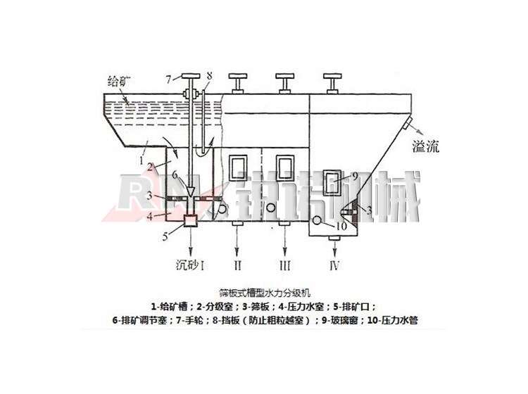 江西銳諾云錫式分級箱其外形呈倒立的錐體,底部的一側(cè)設(shè)有壓力水管,另一側(cè)有沉砂...