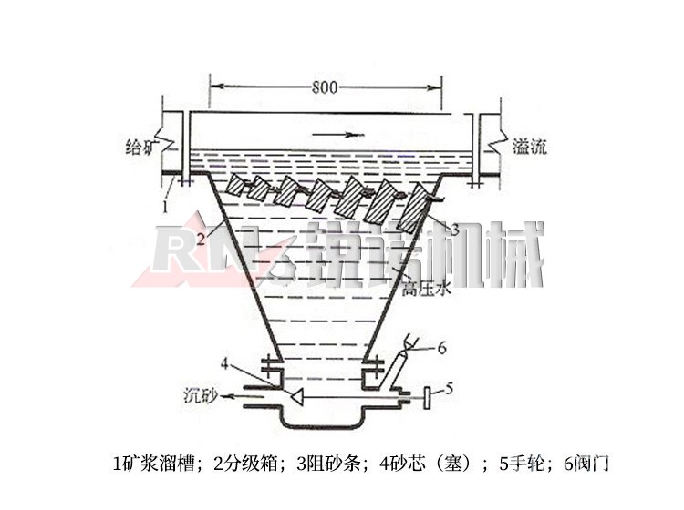 江西銳諾云錫式分級箱其外形呈倒立的錐體,底部的一側(cè)設(shè)有壓力水管,另一側(cè)有沉砂排出管。分級箱常為個,串聯(lián)工作。中間用礦漿運(yùn)輸流槽連接起來。箱的上表面有五種規(guī)格(寬×長 )200×800、300×800、400×800、600×800、800×800。主體箱高約為1000mm,各分級箱安裝時由小到大排列。沉砂則由粗到細(xì)排出。
